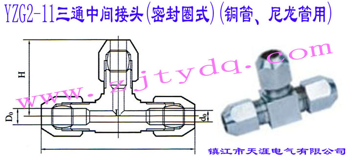 儀表管接頭 >> YZG2銅制氣動管路接頭(銅管及尼龍管用) >>YZG2-11三通中間接頭(密封圈式)(銅管、尼龍管用) YZG2-11 T-pipe Intermediate Connector
